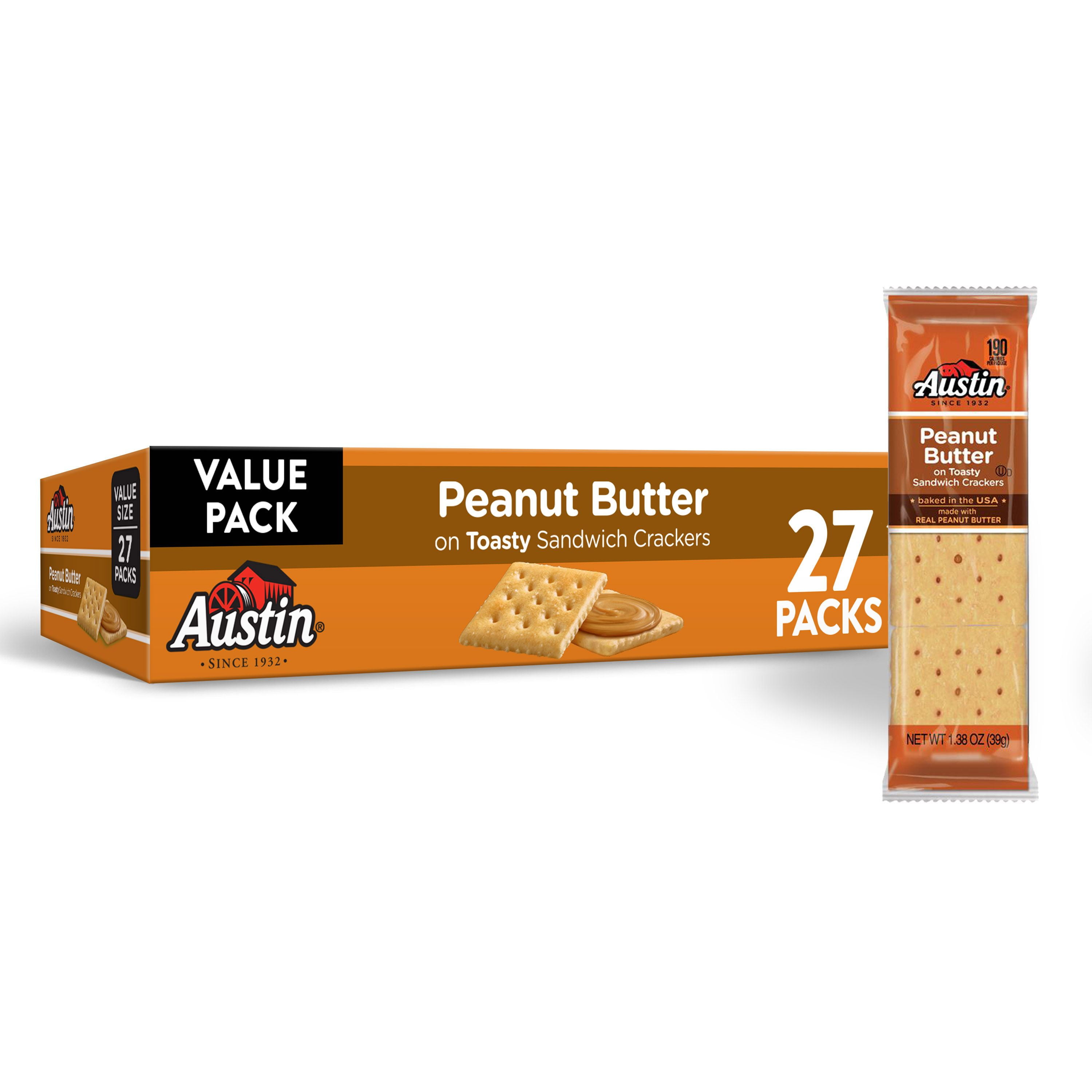 Austin Sandwich Crackers, PB and J, 8 Ct, 11 Oz, Tray - Walmart Our crackers are conveniently packaged to fit your non-stop lifestyle, making it easier than ever to pack a snack for all kinds of busy, on-the-go moments. Feel free to add some crackers to a packed lunch, stash them in your tote for a well-deserved break at work, enjoy them during a long commute, or as an effortless snack while running errands. Nutrition Facts for Austin PB&J Sandwich Crackers - MyFoodDiary Nutrition Facts for Austin PB&J Sandwich Crackers • MyFoodDiary® Nutrition Facts Serving Size package 1 package = 39g Amount Per Serving 190 Calories % Daily Value* 14% Total Fat 9g 8% Saturated Fat 1.5g Trans Fat 0g 0% Cholesterol 0mg 10% Sodium 220mg 8% Total Carbohydrate 25g 2% Dietary Fiber 0.5g Total Sugars 6g 12% Includes 6g Added Sugars