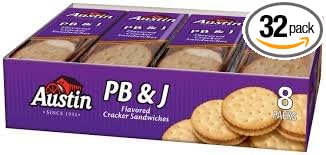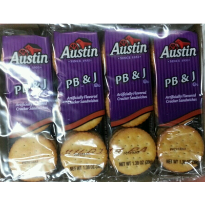 Calories in Austin PB & J Cracker Sandwiches - Nutritional ... Comprehensive nutrition resource for Austin PB & J Cracker Sandwiches. Learn about the number of calories and nutritional and diet information for Austin PB & J Cracker Sandwiches. This is part of our comprehensive database of 40,000 foods including foods from hundreds of popular restaurants and thousands of brands.