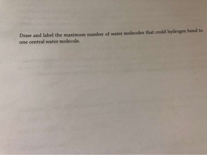 (Tenecteplase) DESCRIPTION - Food and Drug Administration bolus administration after reconstitution with Sterile Water for Injection (SWFI), USP. Each vial of TNKase nominally contains 52.5 mg Tenecteplase, 0.55 g L-arginine, 0.17 g phosphoric acid, and 4.3 mg polysorbate 20, which includes a 5% overfill. Each vial will deliver 50 mg of Tenecteplase. CLINICAL PHARMACOLOGY General Water Flashcards | Quizlet Hydrogen bonding occurs between a hydrogen atom and another strongly electro-negative atom of a polar covalent bond in the same or another molecule Draw two water molecules and label the bond that links them together. 1. Draw two water molecules. 2. Dotted line between the oxygen of one and a hydrogen of another and label it hydrogen bond Solved Answer in at least one paragraph for each | Chegg.com 1. Draw AND label a water molecule. Include atoms, bonds, and polarity. 2. Compare and contrast covalent, ionic, and hydrogen bonds. Give examples 3. Compare and contrast latent heat and sensible heat This problem has been solved! See the answer Answer in at least one paragraph for each question. 1. Draw AND label a water molecule. How to Draw Molecules and Chemical Bonds ... Just Like Lewis Dot ... 1 Introduction. Our primary goal for today is to be able to draw diagrams of molecules, such as we see in figure 1. These diagrams tell us that the F 2 molecule has a single bond, the CO 2 molecule has two double bonds, and the HCN molecule has one single bond plus one triple bond. There are two main methods for constructing such diagrams.