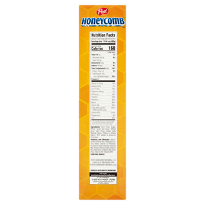 Post Honeycomb Cereal, 12.5 oz - Fred Meyer Shop for Post Honeycomb Cereal (12.5 oz) at Fred Meyer. Find quality breakfast products to add to your Shopping List or order online for Delivery or Pickup. ... Nutritional Information. Kosher. OptUP Nutrition Rating. loading. Nutrition Facts. servings per container. Serving size 0.75cup (40 g) Amount per serving. Calories 160