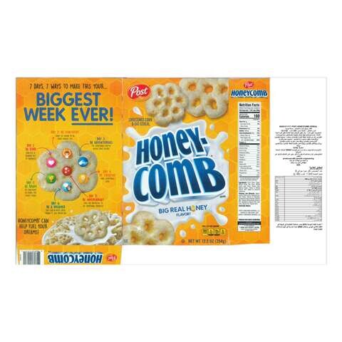 Honeycomb Original Cereal | Post Consumer Brands Canada Available in 400 g and 595 g boxes. Honeycomb has more than just big taste inside its uniquely shaped honeycomb pieces. See what else each playful bite has to offer. Nutrition Facts. Excellent source of Thiamin.