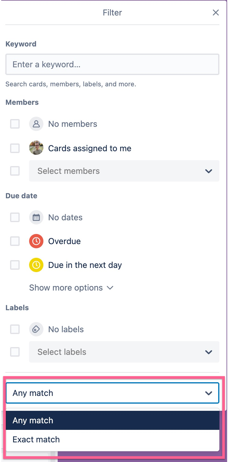 support.atlassian.com › jira-software-cloud › docsWhat are filters on the roadmap? | Jira Software Cloud ... For example, you’ll only see the Type filter option when more than one issue type is added to your plan, and label will only show when you have one or more labels assigned to issues. If a filter doesn’t show at the top of the screen, make sure the field you’re looking for contains a value. blog.trello.com › trello-resource-management-toolsThe Trello resource management tools and features you need now Oct 04, 2022 · Tool #1: Trello Views. Good resource management doesn’t happen unless you have a way to monitor and review the resources you’re managing. Enter Trello Views. With Trello Views, you can monitor workflows, isolate single-member tasks, or track overall project progress by switching to view due dates.