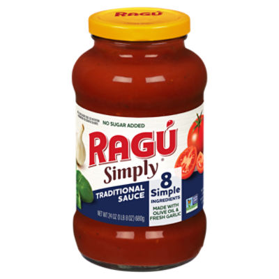 Ragú Simply Traditional, Pasta Sauce - shoprite.com Add Ragú Simply Traditional, Pasta Sauce to Favorites. Pantry Pasta, Sauces, & Grains Pasta Sauces Red Sauces. Ragú Simply Traditional, Pasta Sauce, 24 Ounce ... * The % Daily Value (DV) tells you how much a nutrient in a serving of food contributes to a daily diet. 2,000 calories a day is used for general nutrition advice. Product Number ...