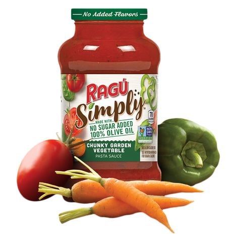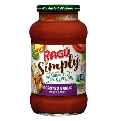 Simply Pasta Sauces | RAGÚ® Undeniably Delicious. Real simple sauces you can feel good about feeding the whole fam. With no added sugar and ingredients like olive oil, tomatoes, onions, garlic and basil. *Not a low-calorie food. See Nutrition Information for sugar & calories. RAGÚ Simply Sauces Roasted Garlic RAGÚ Simply Sauces Chunky Garden Vegetable Pasta Sauce