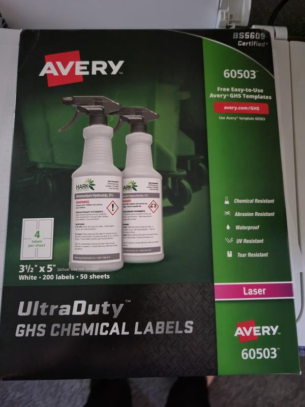 Avery UltraDuty GHS Chemical Labels for Pigment Inket Printers, Waterproof, UV Resistant, 4x4, 200Pk (60524)