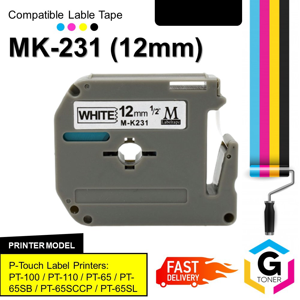 PT-65 Label Tape M Tape M231 M-K231 Compatible with Brother P Touch Label Maker PT-M95 PT-70 PT-90 PT-70BM PT-65 PT-85 PT-70SR Black on White 0.47inch ...