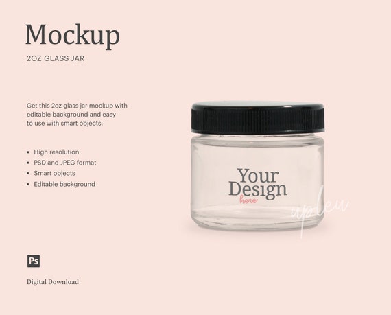 2 oz Glass Jar Mock Up, Cream Jar Mock Up, Pot Cosmetic Glass Mock Up, Glass Jar Mockup | Compatible With Affinity Designer | Smart Object