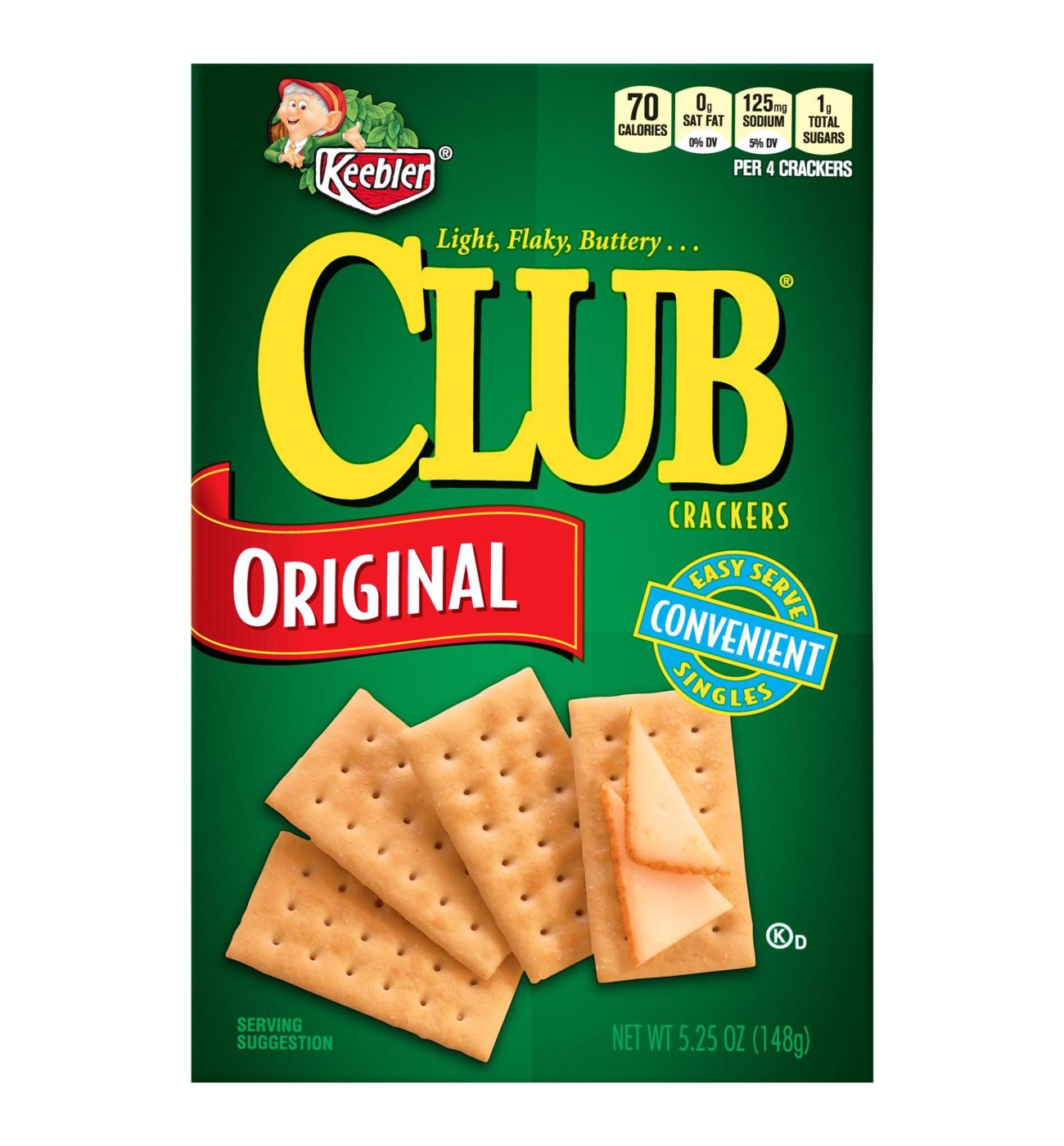 Club® Original Crackers | Kellogg's® Club® Crackers Contains 2% or less of salt, high fructose corn syrup, leavening (baking soda, sodium acid pyrophosphate, monocalcium phosphate), corn syrup, soy lecithin. For full nutrition information and other package sizes, visit Smartlabel: Select pack size: View SmartLabel ★★★★★ ★★★★★ 3.8 588 Reviews 388 out of 562 (69%) reviewers recommend this product Calories in Club (Keebler) Original Crackers | CalorieKing 19 minutes Based on a 35 year old female who is 5'7" tall and weighs 144 lbs. Calorie Breakdown Where do the calories in Club (Keebler) Original Crackers come from? 3.1% 55.4% 41.5% Protein Total Carbohydrate Total Fat 70 cal
